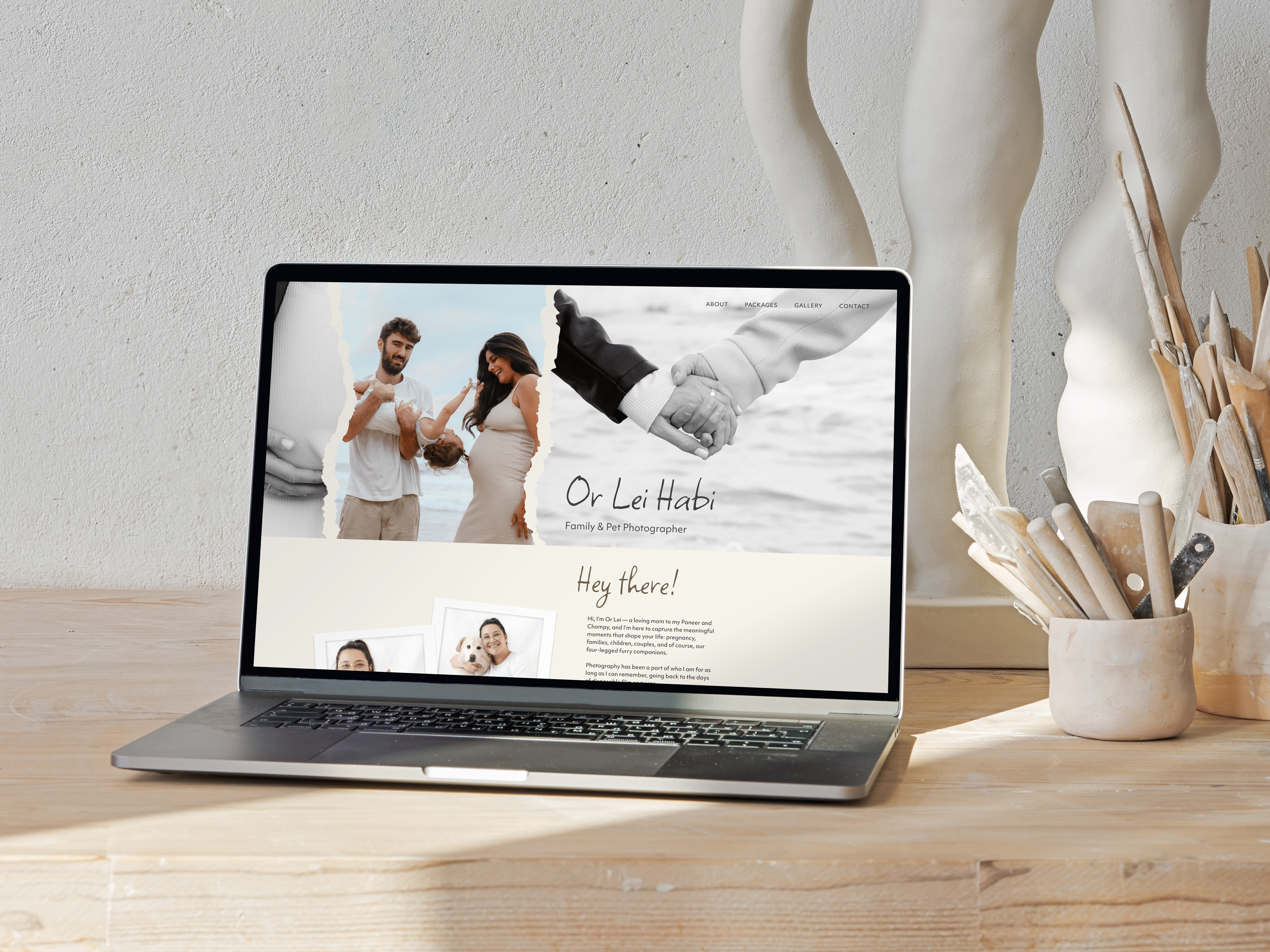 The site’s design was fully tailored to her vision, using a natural and distinctive visual language that showcases her portfolio and warm approach to families and pets.